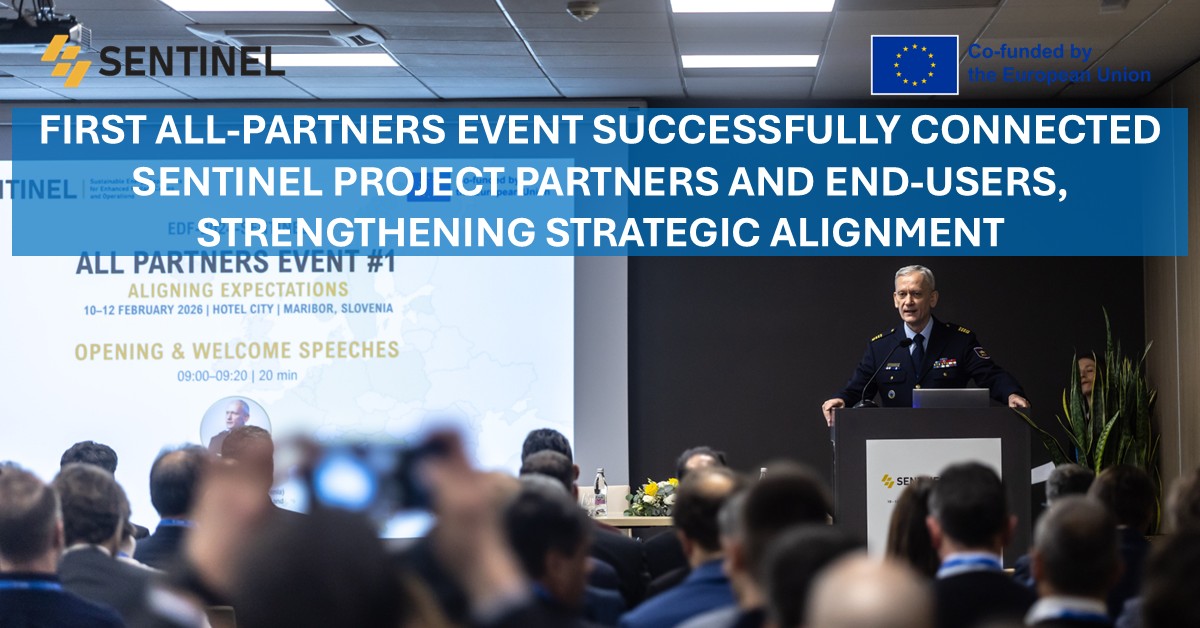 More than 130 participants from 16 European countries gathered in Maribor on 10 February 2026 for the first day of the SENTINEL 1st All Partners Event – “Aligning Expectations”. Hosted by TECES, Green Tech Cluster, the Coordinator of the EDF-2024-SENTINEL project brought together project partners, representatives of the European Commission, members of the End-User Advisory Board, and participating Ministries of Defence. Among the welcome speakers was Borut Sajovic, Minister of Defence of the Republic of Slovenia.